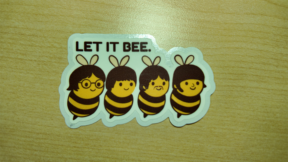 For all the music lovers and honeybee fans! This “Let It Bee” sticker features four groovy little bees channeling their inner Fab Four. It’s the perfect punny addition to your guitar case, journal, or laptop!